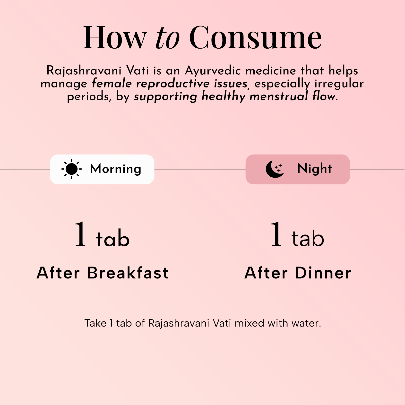 Rajashravani Vati is an Ayurvedic medicine used primarily to support female reproductive health by regulating menstrual cycles and alleviating related discomfort.