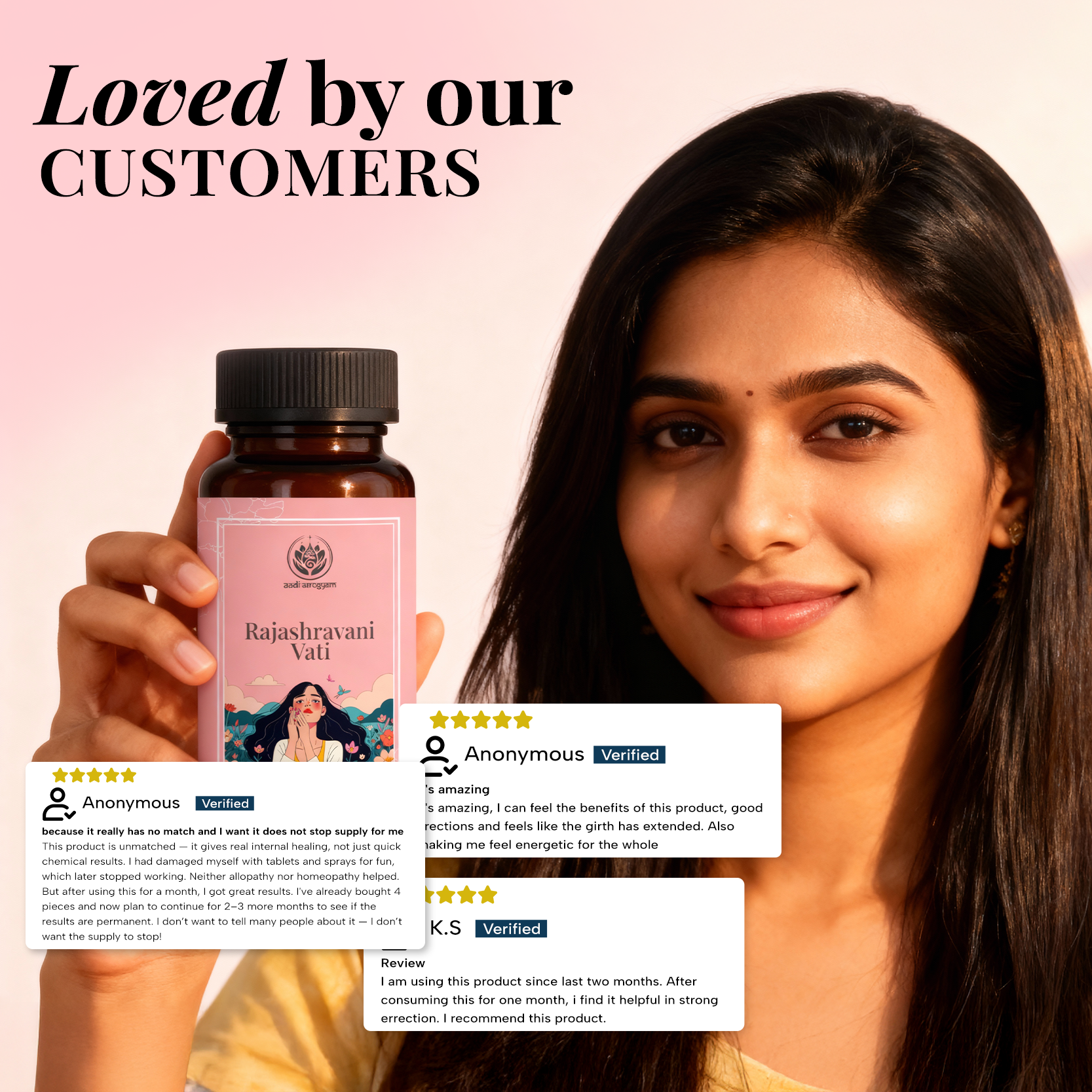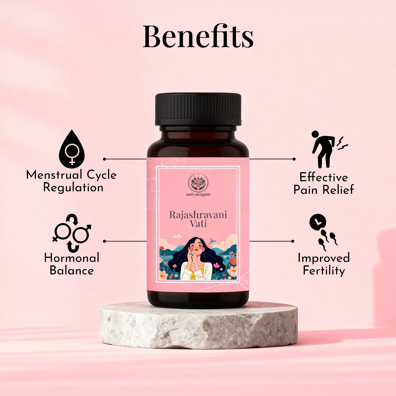 Rajashravani Vati is an Ayurvedic formulation designed to support women’s reproductive health and maintain hormonal balance.
